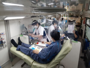前回と同様に新型コロナウイルス対策のため献血バス内は常時換気を行い、